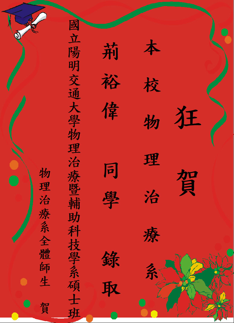 110學年度荊裕偉考取國立陽明交通大學物理治療暨輔助科技學系碩士班